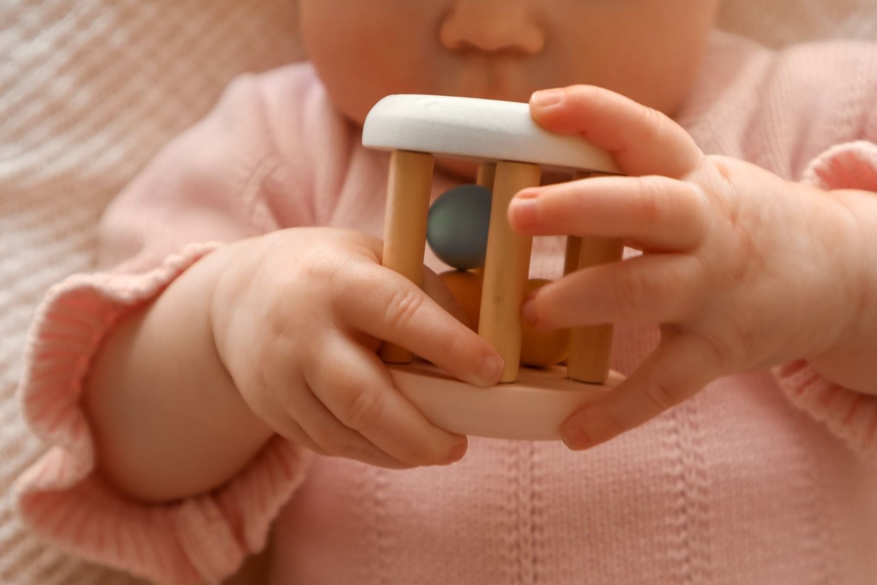 Delight your baby with the Wooden Koala & Bunny Rattle from Toyslink. Crafted from FSC-certified wood and adorned with charming koala and bunny illustrations, this rattle is designed for tiny hands to grasp and shake. Its gentle sound stimulates auditory development, making it an ideal first toy for sensory exploration.